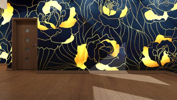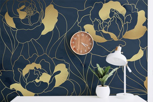 Art Déco BLUE GOLD FLOWER – tapeta na wymiar