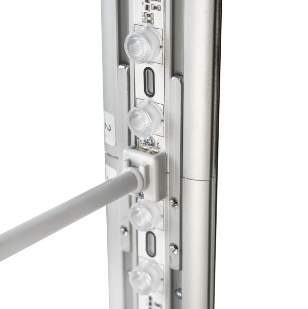 Dzięki magnetycznym łączeniom możesz w prosty sposób zestawić kilka modułów w jedną spójną ścianę – bez użycia narzędzi. Aluminiowa konstrukcja, tekstylna grafika z silikonową krawędzią oraz zintegrowane oświetlenie LED tworzą całość, która prezentuje się profesjonalnie i nowocześnie.