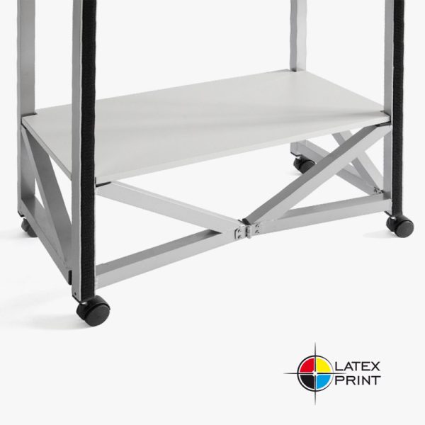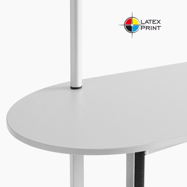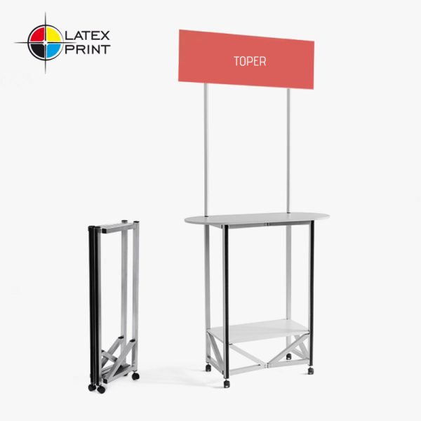 Stoisko Elypse Mini jest wykonane z profili aluminiowych malowanych proszkowo, posiada blat z płyty meblowej w dowolnym z oferowanych kolorów. Dzięki solidnej, spawanej konstrukcji stoisko promocyjne może utrzymać obciążenie około 100 kg. Zamontowane kółka pozwalają na swobodne przemieszczanie produktu. Stoisko degustacyjne można błyskawicznie rozłożyć, a po złożeniu mieści się w niewielkiej torbie transportowej.