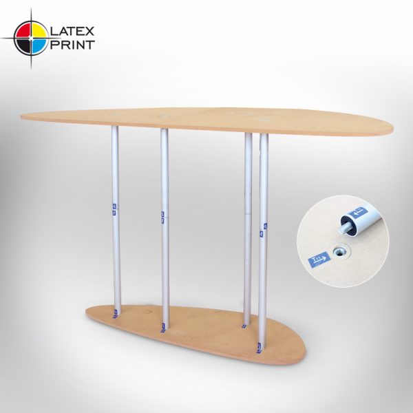 Owalny Stół Formulate to idealne rozwiązanie eventowe. Może być bufetem, miejscem na prezenty albo trofea. Wszystko zależy od potrzeb. Indywidualna grafika sprawi, że system wkomponuje się w stylistykę całej imprezy.