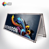 Rama + baner wielkoformatowy Monsoon teraz dostępny także w wersji naściennej. Ramę można zamontować na zewnątrz lub wewnątrz budynku. Łatwy montaż grafiki umożliwia jej regularną wymianę.