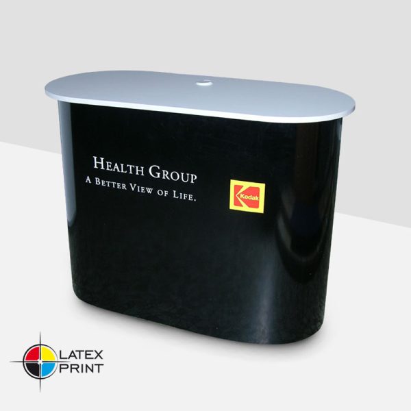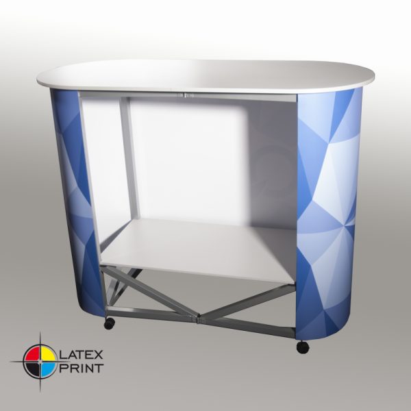 Jedna z bardziej funkcjonalnych trybunek wystawienniczych. Szybkość i łatwość rozstawiania, współgrają z dużą wielkością blatu. Dodatkowo trybunka posiada półkę wewnętrzną zwiększając możliwości przechowywania niezbędnych materiałów targowych. Konstrukcja posiada od spodu kółka umożliwiające łatwe przemieszczanie i ustawianie tryb. Ten model występuje w dwóch wymiarach 120 cm i 95cm.