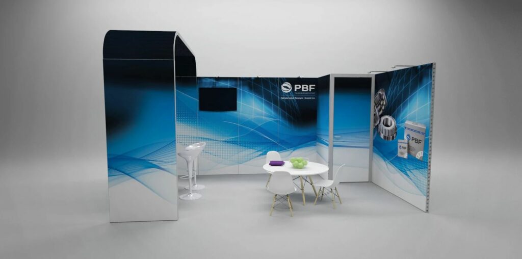 Elementy konstrukcji w systemie XPFrame zostały wykonane z aluminium, który nadaje im niezbędnej wytrzymałości, a jednocześnie lekkości. Wypełnienie modułów to nadruk na płycie PCV lub materiale poliestrowym. Taka zabudowa stoiska targowego nie tylko będzie solidna, ale też bardzo trwała. Bez problemu użyjesz tych samych elementów do budowy swojego standu na kolejnych imprezach i eventach.